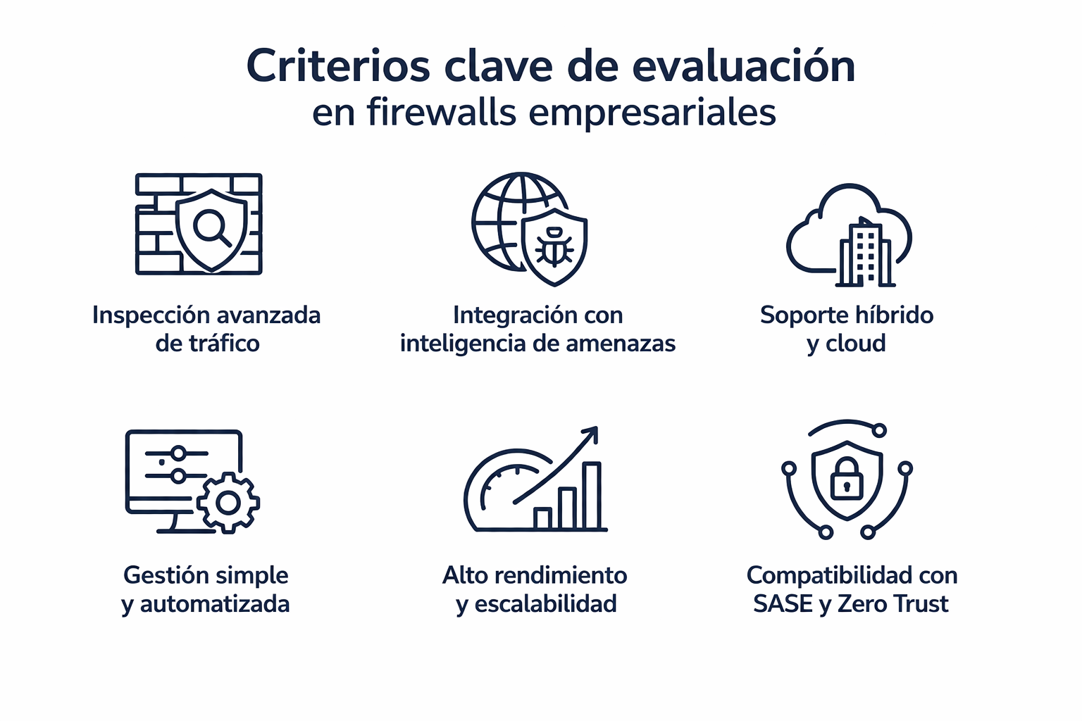 Para seleccionar correctamente un firewall empresarial, es importante considerar: