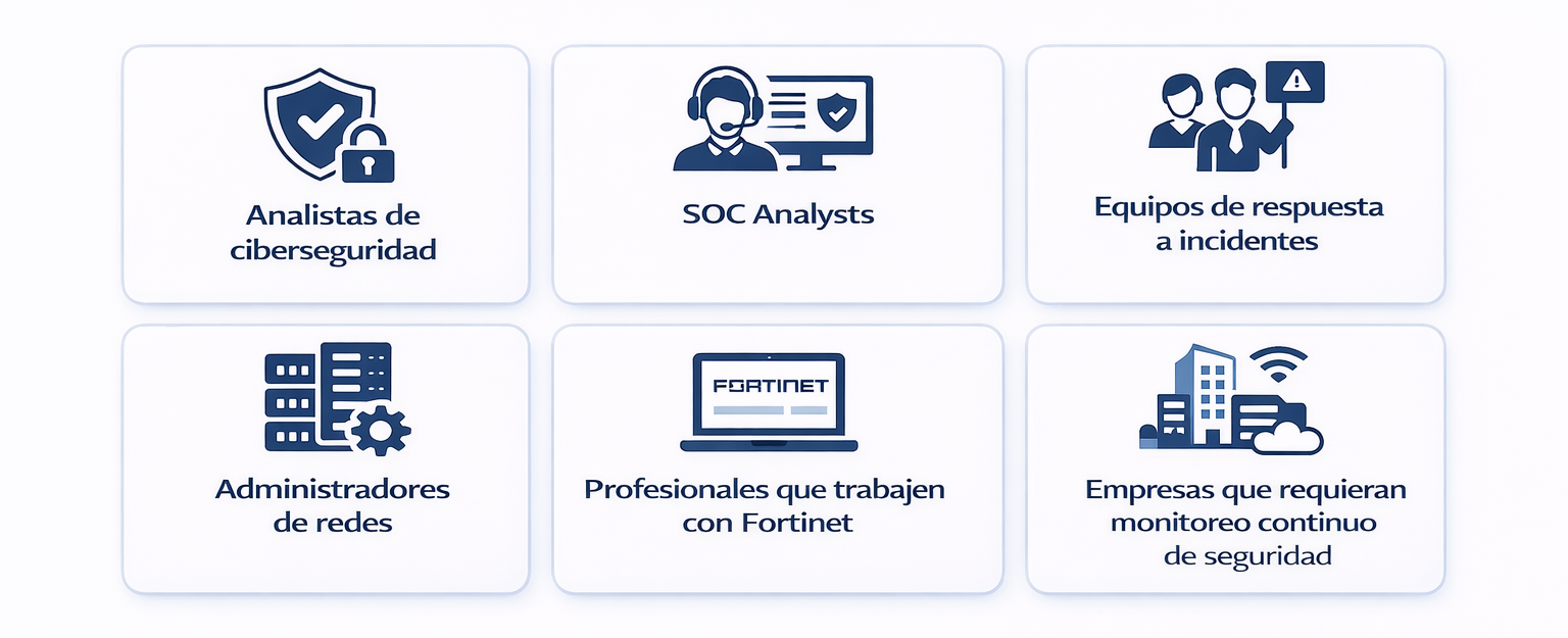 Está orientado a profesionales de ciberseguridad, analistas SOC y equipos TI responsables del monitoreo, análisis y respuesta ante incidentes de seguridad.